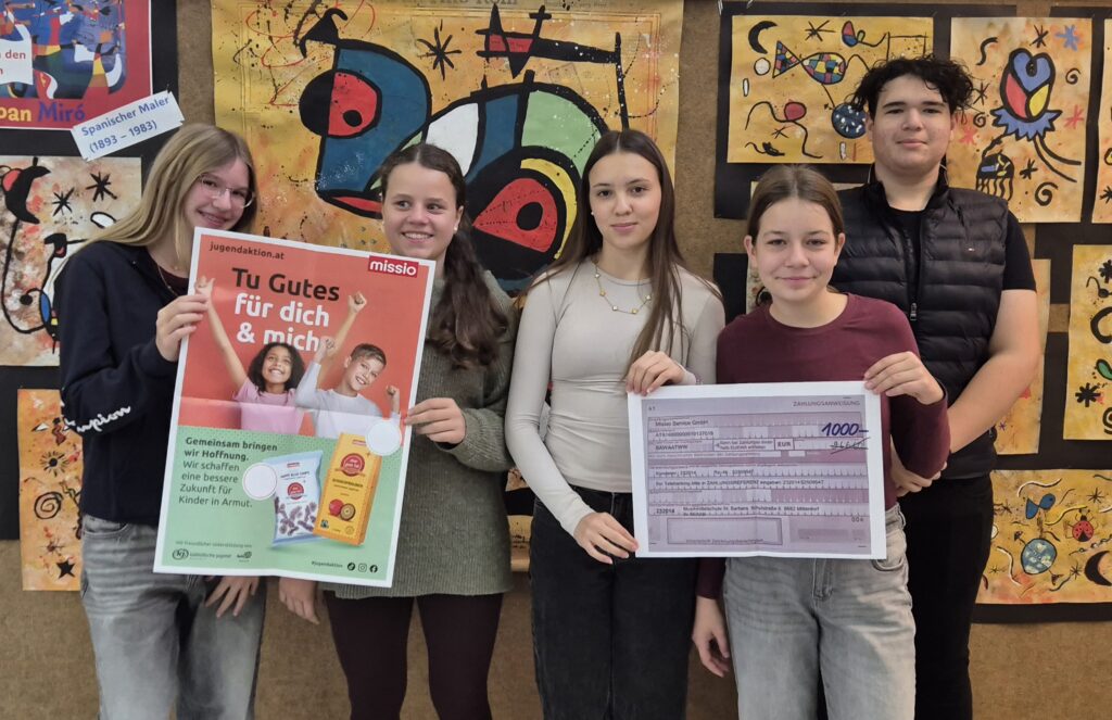 11. November 2025 – “Tu Gutes für dich & mich” lautet der Titel der heurigen Jugendaktion von Missio. Das ließen sich die SchülerInnen der 4M der MMS St. Barbara nicht zweimal sagen und waren sofort bereit, mitzumachen. Eine Woche lang boten sie in der großen Pause Pralinen und Chips für den guten Zweck an. SchulkollegInnen und LehrerInnen kauften fleißig ein, und so konnte die stattliche Summe von 1000,- € erwirtschaftet werden. Dieses Geld wurde Missio Österreich überwiesen, die damit Schulprojekte in Afrika und Sri Lanka sowie Umweltaktivitäten im Regenwald und in Österreich unterstützt.